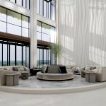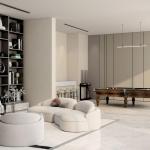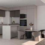 The architecture emphasizes proportion and vertical rhythm, pairing pale-toned façades with dark metal accents for a confident, modern-classic aesthetic. Inside, the homes reflect a clean, contemporary palette with thoughtfully planned living spaces, ideal for end-users and attractive for long-term rental demand in JVC.