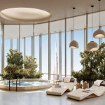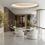 Your journey begins with valet parking, a double-height lobby featuring curated art installations, concierge services, and an elegant brasserie café.